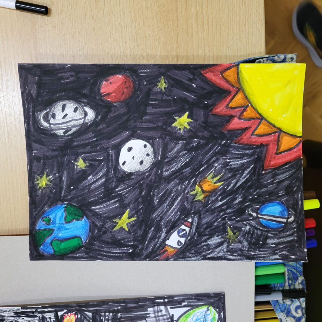svemiru, saznali više o Sunčevu sustavu uz učiteljicu geografije, slikali zamišljeni život u svemiru,