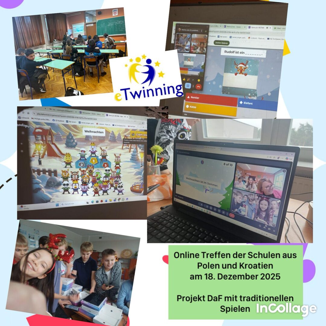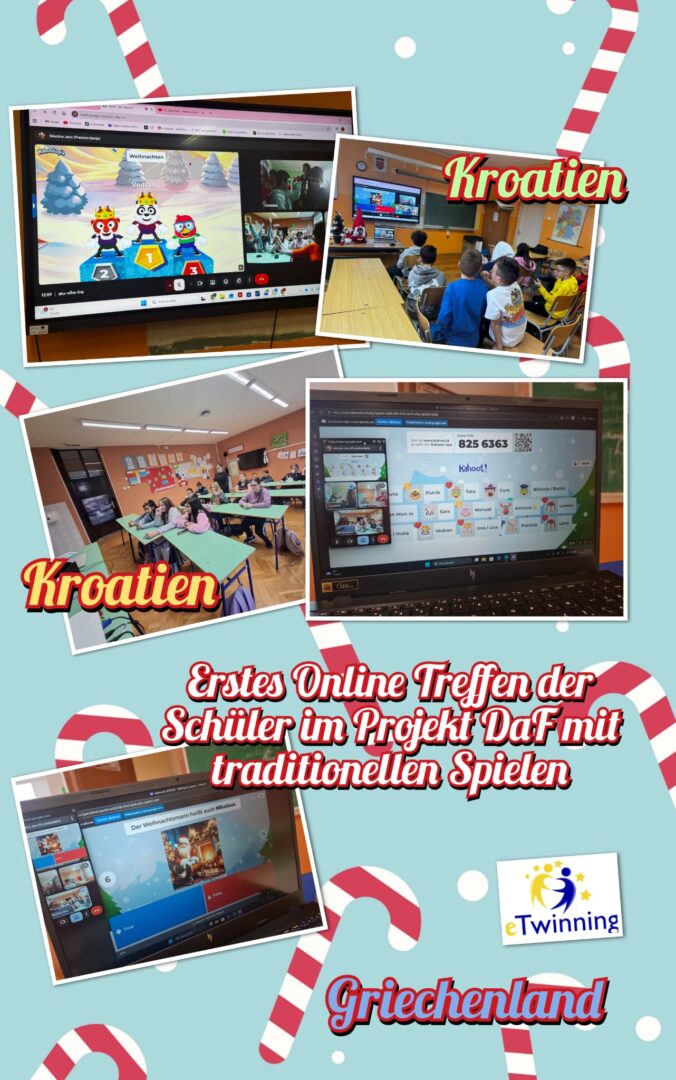 U srijedu su se također susreli sa prijateljima iz projekta ali iz države Italije sa učiteljicom Barbarom Monopoli i u četvrtak sa prijateljima iz Poljske sa učiteljicom Renatom Zajac. Svaki susret je započeo kratkim predstavljanjem i zatim su svi sudionici odigrali kahoot igricu sa riječima i pojmovima vezanih za Božić na njemačkom jeziku. Na svakom susretu učenik pobjednik je bio učenik Vedran Ignac iz 6.c razreda. Bravo Vedrane!