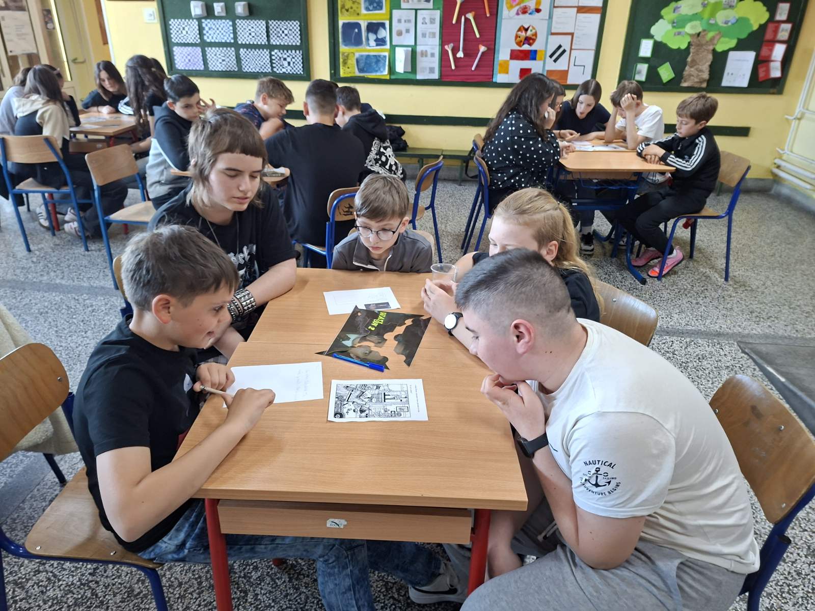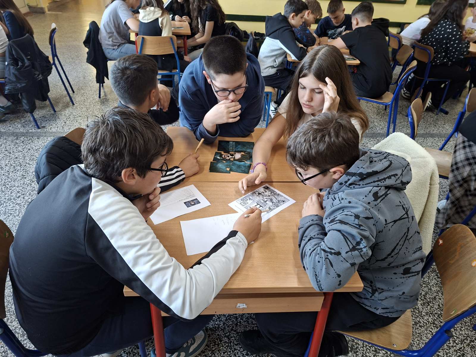 U petak, 24. travnja učenici OŠ „Šećerana“ obilježili su Noć čitanja. Radionice su započele u 18:00 h odabirom skupina i kreativnim igrama u kojima su se učenici uživjeli u uloge poznatih detektiva. U napetoj i neizvjesnoj borbi ipak smo dobili pobjednike koji su nagrađeni, ali ne samo pobjednici već tri prvoplasirane ekipe. Ovim putem zahvaljujemo Gradskoj knjižnici Beli Manastir i izdavačkoj kući „Školska knjiga“ koji su se odazvali našem pozivu i donirali nagrade za naše učenike. Osim u istraživačkim igrama, učenici su pokazali i svoju ljubav prema pisanoj riječi te izražajno čitali lirske pjesme, praćeni burnom podrškom publike. Večer je završila gledanjem filma Enola Holmes uz obvezne kokice, kekse i sok. Nakon filma učenici su sa svojim učiteljicama i učiteljem (Dorom, Marinom, Suzanom, Tijanom, Miloradom i Silvijom) raspremili školsko predvorje i vjerujemo zadovoljni otišli svojim kućama.